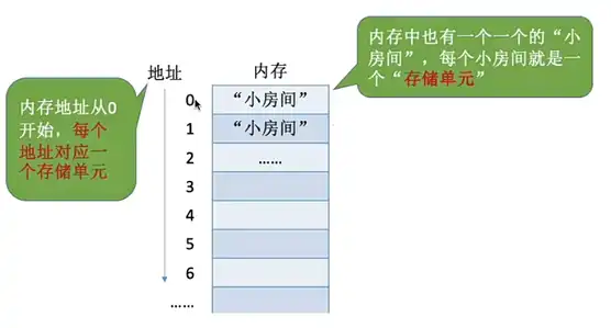 存储单元:内存中有一个个小房间,其中的每个小房间就是存储单元。