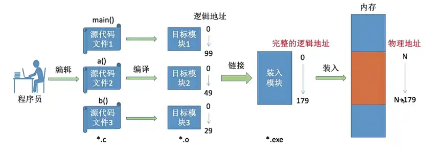 • 将多个目标模块组装起来形成一个装入模块。windows 中就是. exe 文件,此时装入模块就有一个完整的逻辑地址。