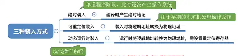 • 第一种是由编译程序实现的,第二种是由装入程序负责的,装入程序也是操作系统的一部分。第三种借助了一个重定位寄存器。