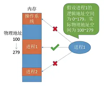 方式二:采用重定位寄存器(又称为基址寄存器)和界地址寄存器(又称为限长寄存器)进行越界检查。重定位寄存器中存放的是进程的起始物理地址。界地址寄存器中存放的是进程的最大逻辑地址。