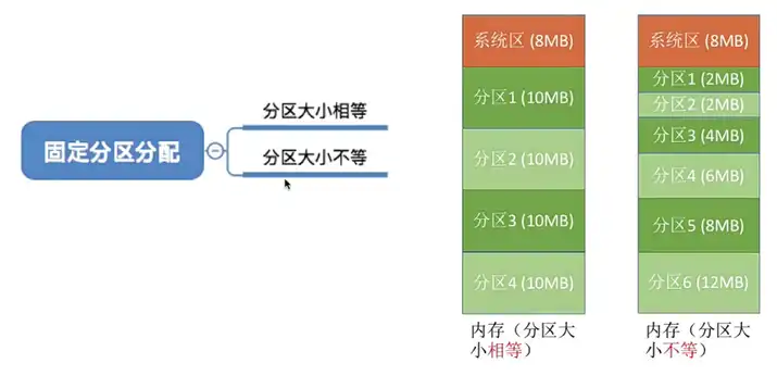 • 一般采用这种策略的系统可以根据进程大小、优先级或者根据程序员给出的参数来确定一个进程分配的内存块数。