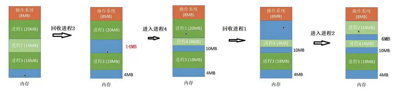 注意:作业一旦进入到内存后,在运行期间就不能够再移动,也不能再申请内存空间。