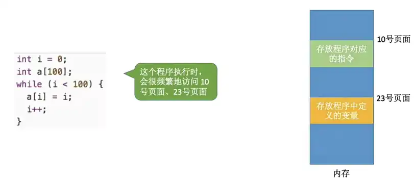 • 局部性原理主要是空间局部性原理,如果当前访问了某个内存单元,在之后很有可能会接着访问与其相邻的那些内存单元。