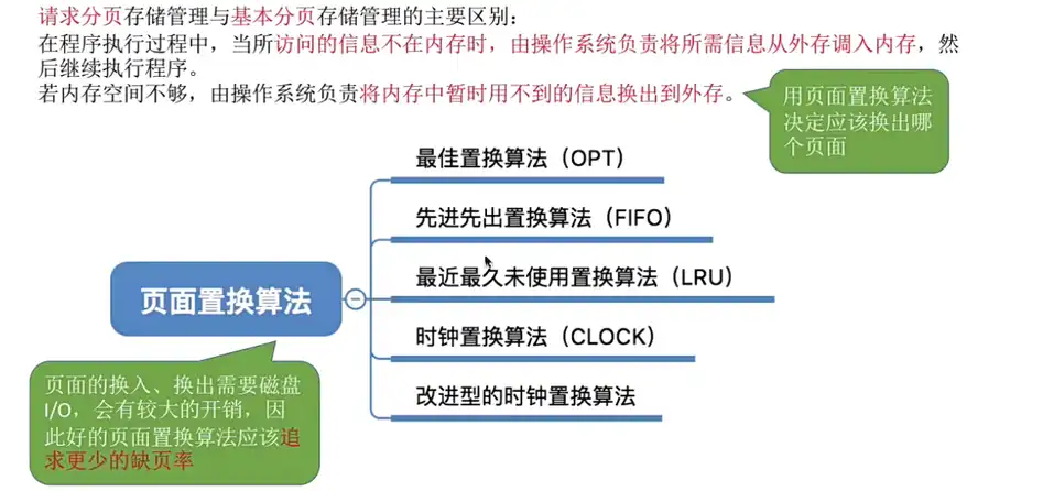 • 会有页面分配、置换策略,以及磁盘中包含有对换区,根据实际情况来选择区域进行换入换出的。