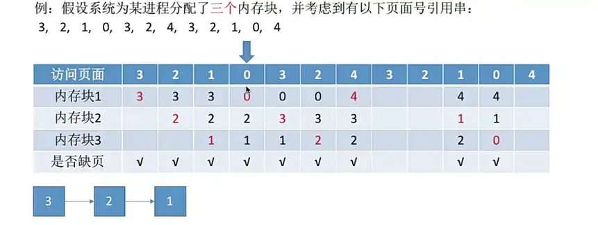 • 缺页配置:当某进程发生缺页时,会从空闲物理块中取出一块分配给改进程;若是无空闲物理块,则可选择一个未锁定的页面换出外存,再将该物理块分配给缺页的进程。