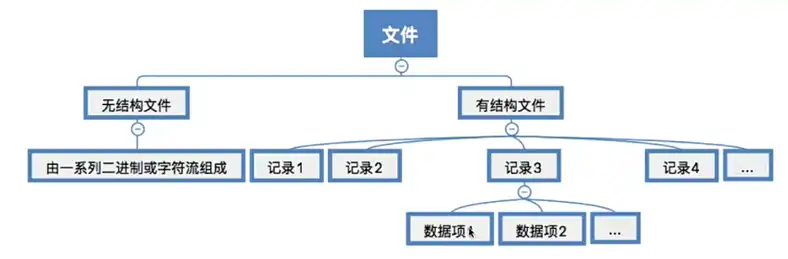 有结构文件:如数据库表,由一组相似的记录组成,又称 “记录式文件”。
