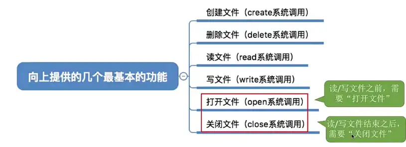 用户接口【文件的基本操作章节】:文件系统需要向上层的用户提供一些简单易用的功能接口。这层就是用于处理用户发出的系统调用请求,例如 Read、Write、Open、Close 等系统调用。