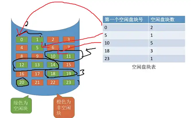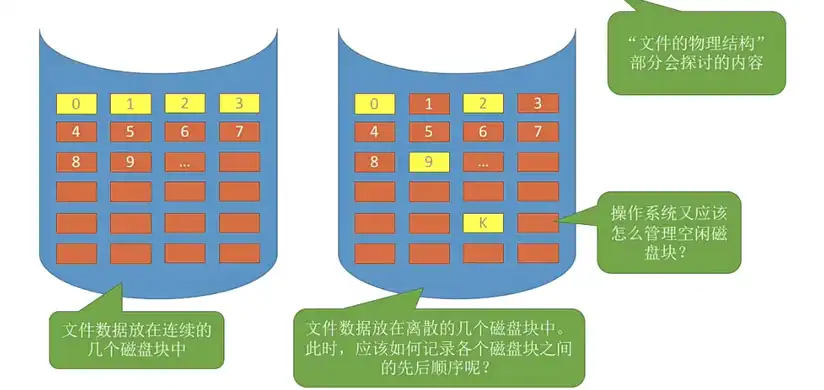 需要探讨的问题如下:文件数据是否放在连续磁盘块中?各个磁盘块之间的先后顺序?操作系统如何管理空闲磁盘块?