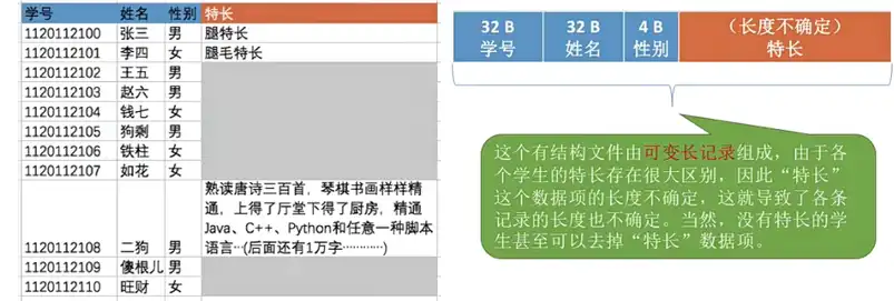 1.2.1、无结构文件与有结构文件(涉及定长、可变长记录)