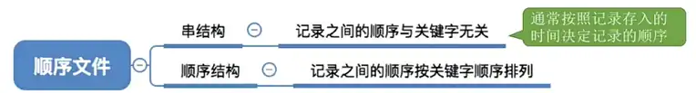 根据这个记录是否按照关键字的顺序排序可以将顺序文件分为:串结构、顺序结构。