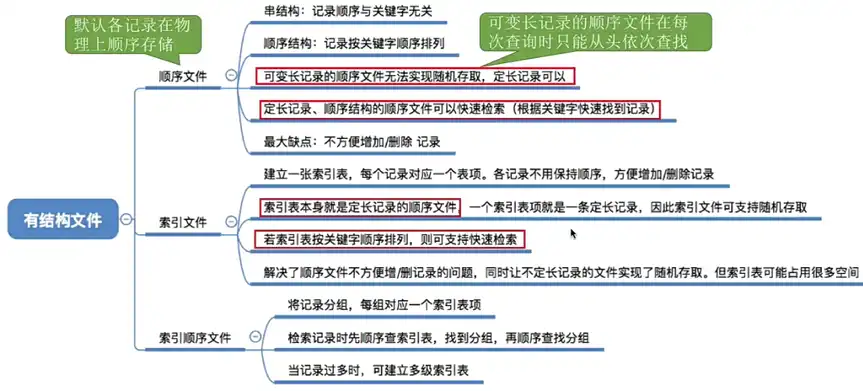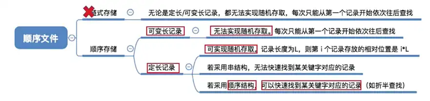 注意:对于考试来说 “顺序文件”,指的是就是物理上顺序存储的顺序文件,对于顺序文件增加 / 删除一个记录比较困难,串结构则相对比较简单。