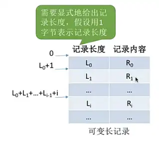 可变长记录的特征:可以看到具体某个条件记录的位置需要根据之前的记录给出的记录长度后才能够推断得到