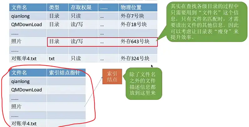 2. 由于用户提供的是文件的存放路径,因此需要操作系统一层一层地查找目录,找到目录项【文件目录系统】。