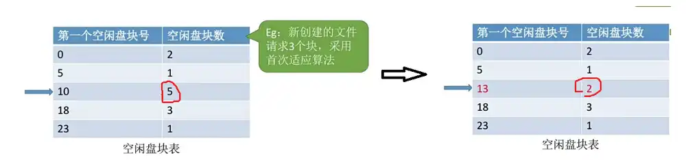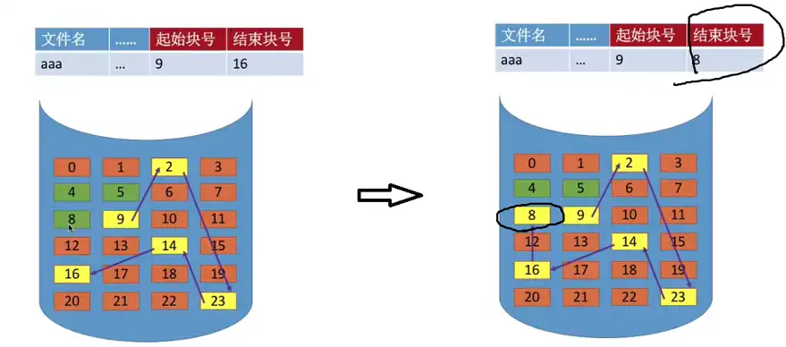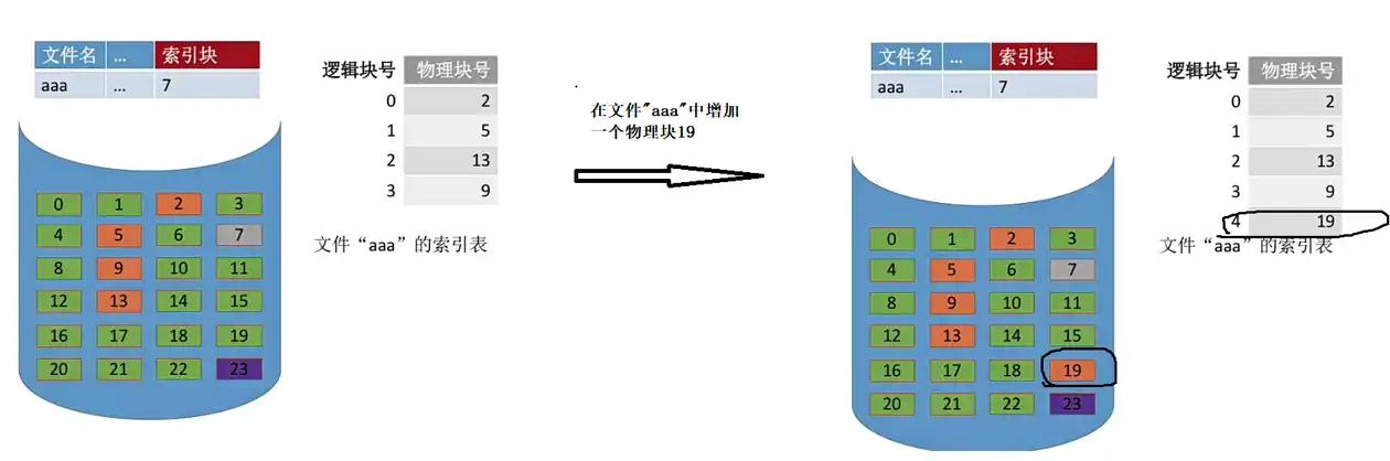 • 若是此时是往文件里添加或者删除一些记录的话,那么显然就有可能需要为这个文件新分配一些物理块,或者如果是删除一些记录那么就需要回收一些文件本来占用的物理块。