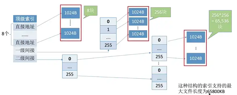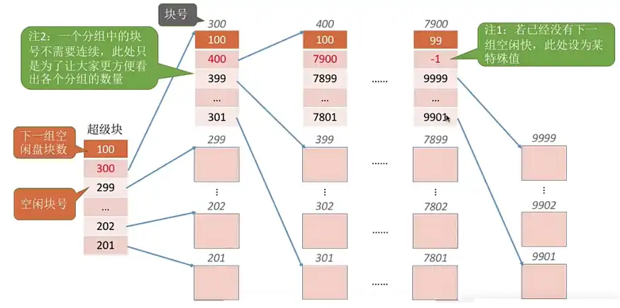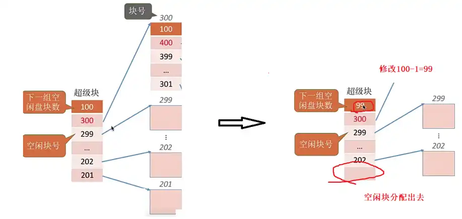 • 超级块:通过超级块可以快速找到磁盘里所有的空闲块。【迅速找到若干个空闲盘块】