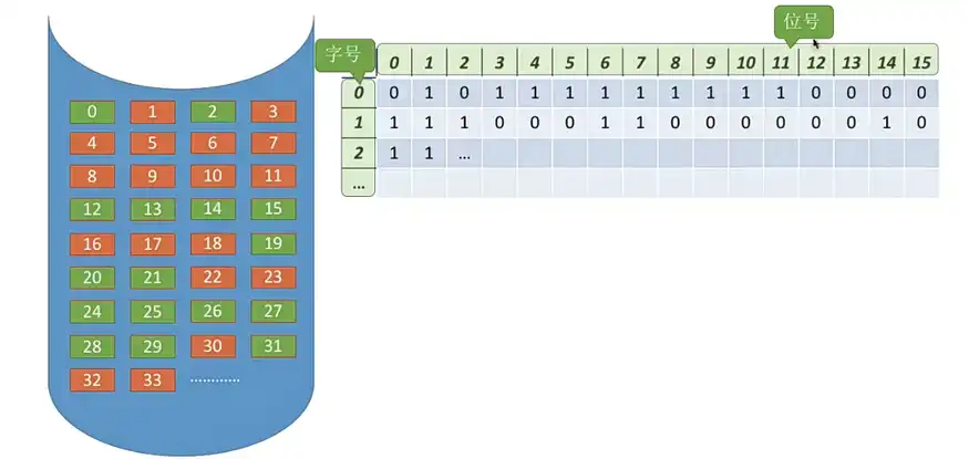 • 空闲空间管理:位示图可以快速判断特点的磁盘块目前是否为空闲。【快速判断一个磁盘块是否空闲】