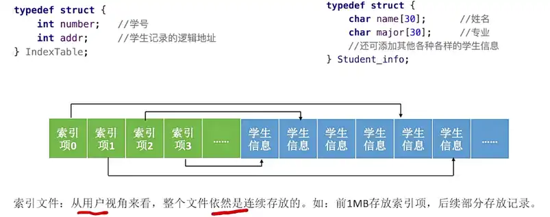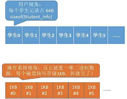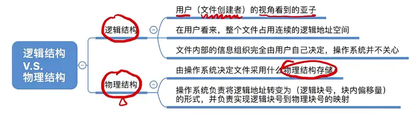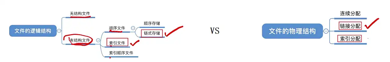 • 物理结构:指的是操作系统看来,文件的数据是如何放在外存中的。