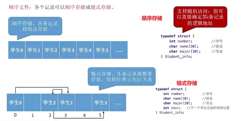 顺序文件:文件中的记录一个接一个顺序排列(逻辑上的),记录可以是定长的或者可变长的。各个记录在物理上可以顺序存储或链式存储。