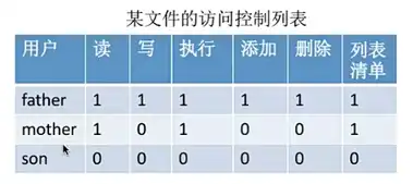 过程原理:用户在对文件进行访问类型时,可以查询对应文件的访问控制列表来查看他是否具有权限,若是没有权限拒绝访问。