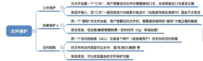 存取控制模块【文件保护小节】:为了保证文件数据的安全,还需要验证用户是否有访问权限。这一层主要完成了文件保护的相关功能。