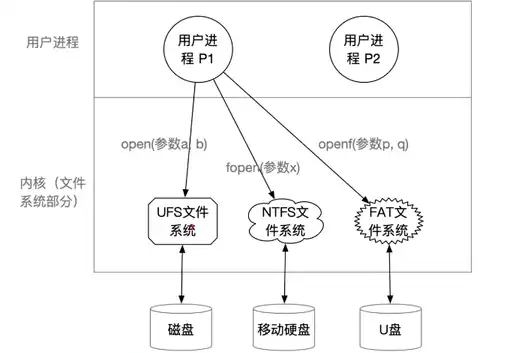 • 操作系统内核向上层用户提供了一个统一标准的函数调用接口,在操作系统当中就引入了虚拟文件系统,英文缩写:vfs