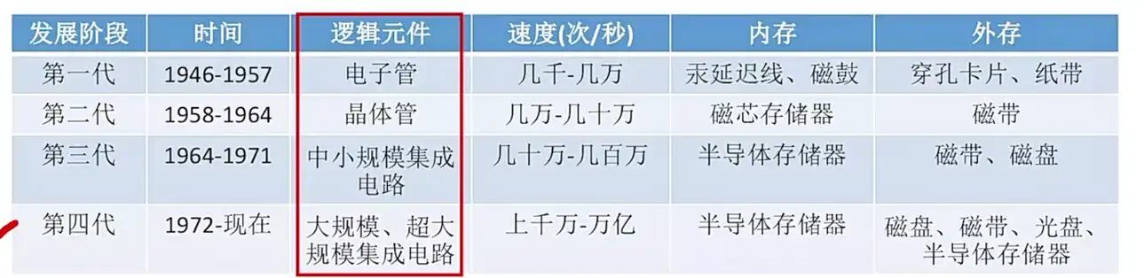 主要是利用电路来进行运算,下面是各个时代发展阶段: