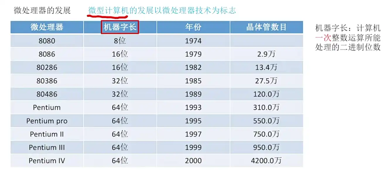 • 例如采用 8080 的 8 位 CPU 处理 16 位字长,则需要处理两次,而采用 8086 则只需要处理一次即可。