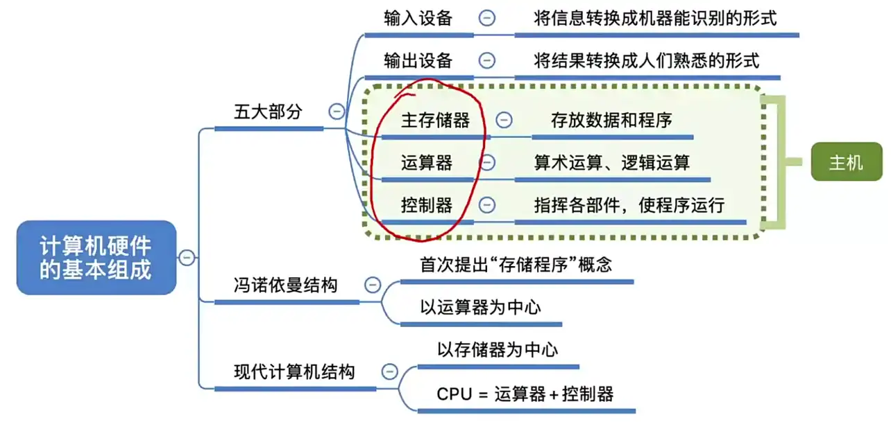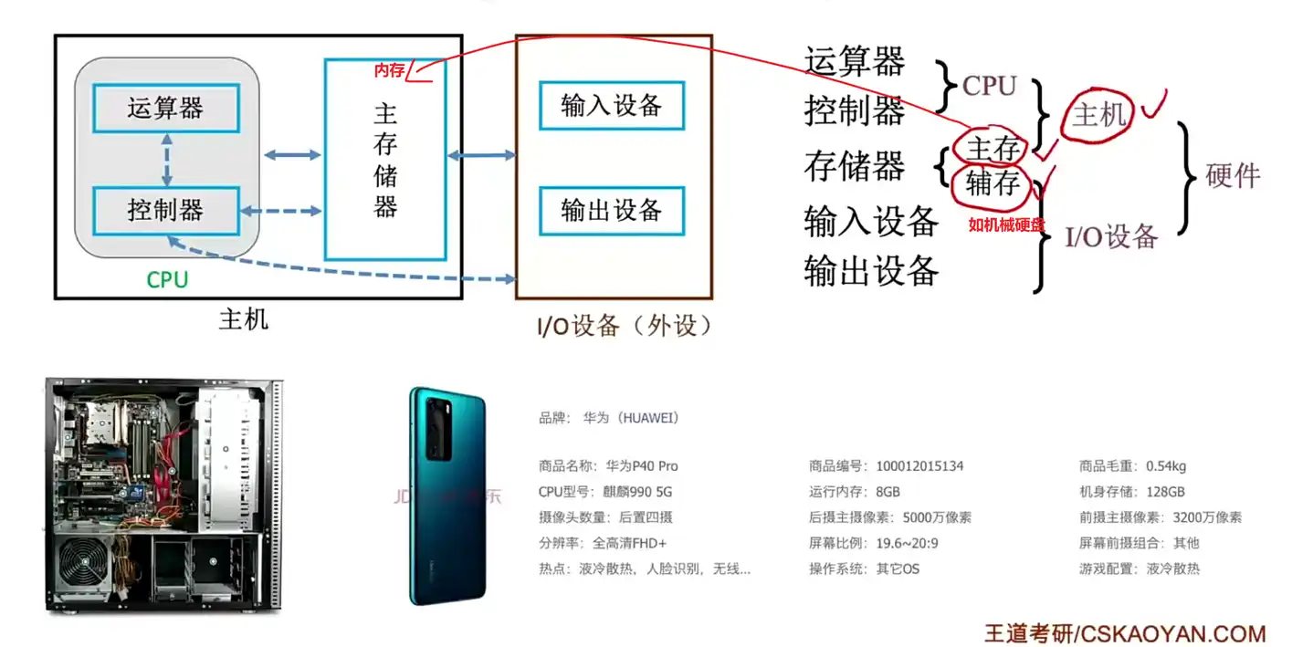 看一下硬件的组成部分及主机、IO 设备的包含范围