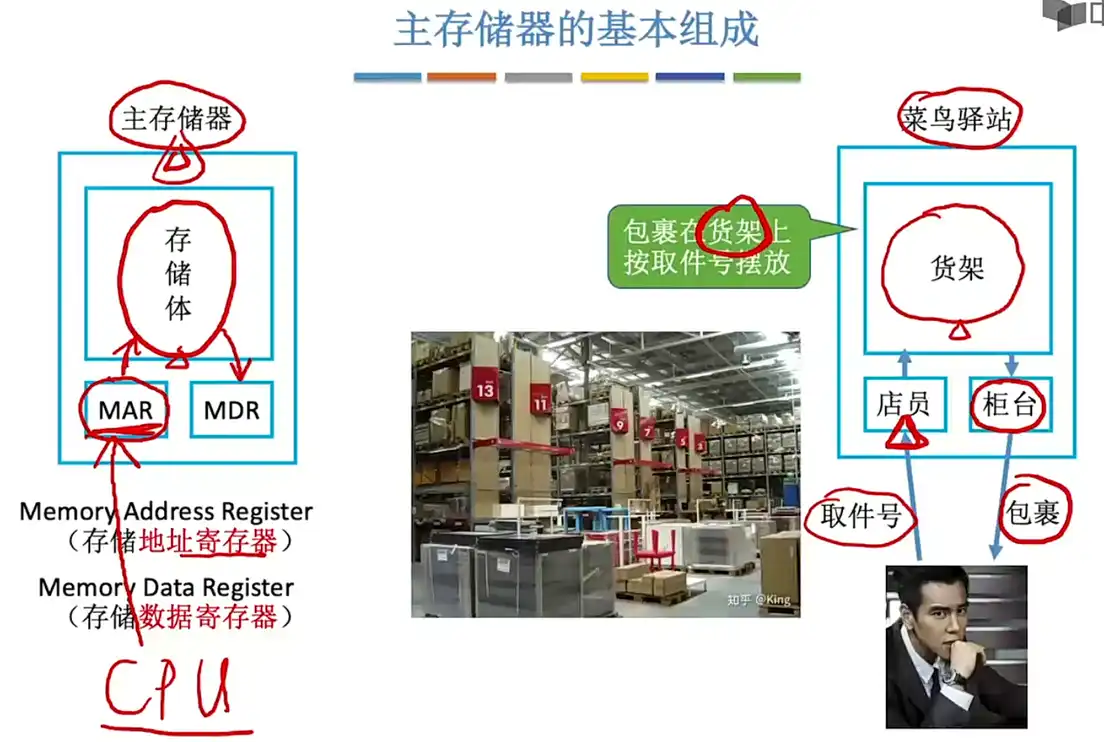 左边是主存储器的结构,而右边则是去仿照主存储器来说明的现实应用: