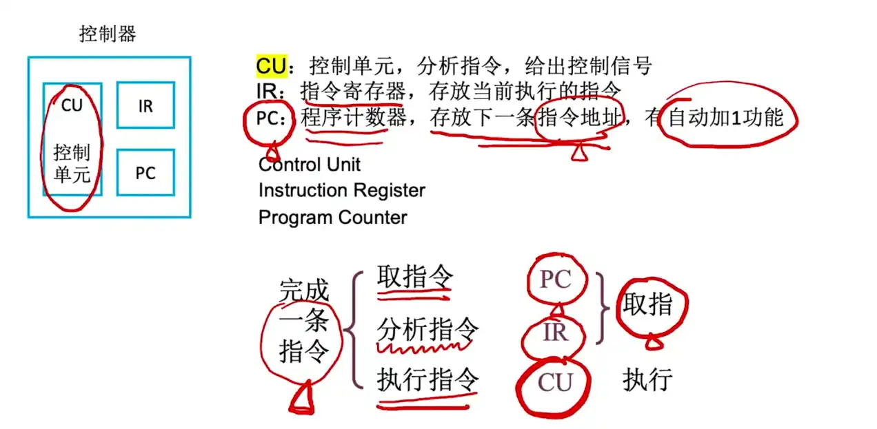 在控制器中 CU 才是真正的核心,很多时候会将 PC、IR 统称为取指阶段,CU 表示为执行阶段: