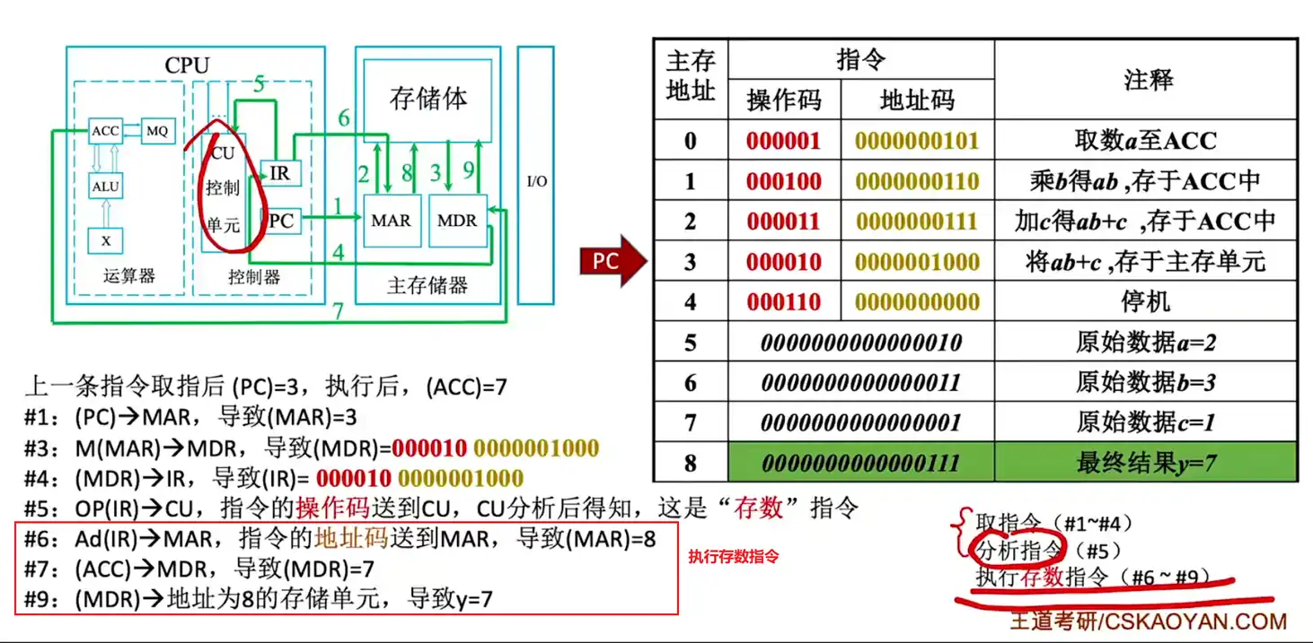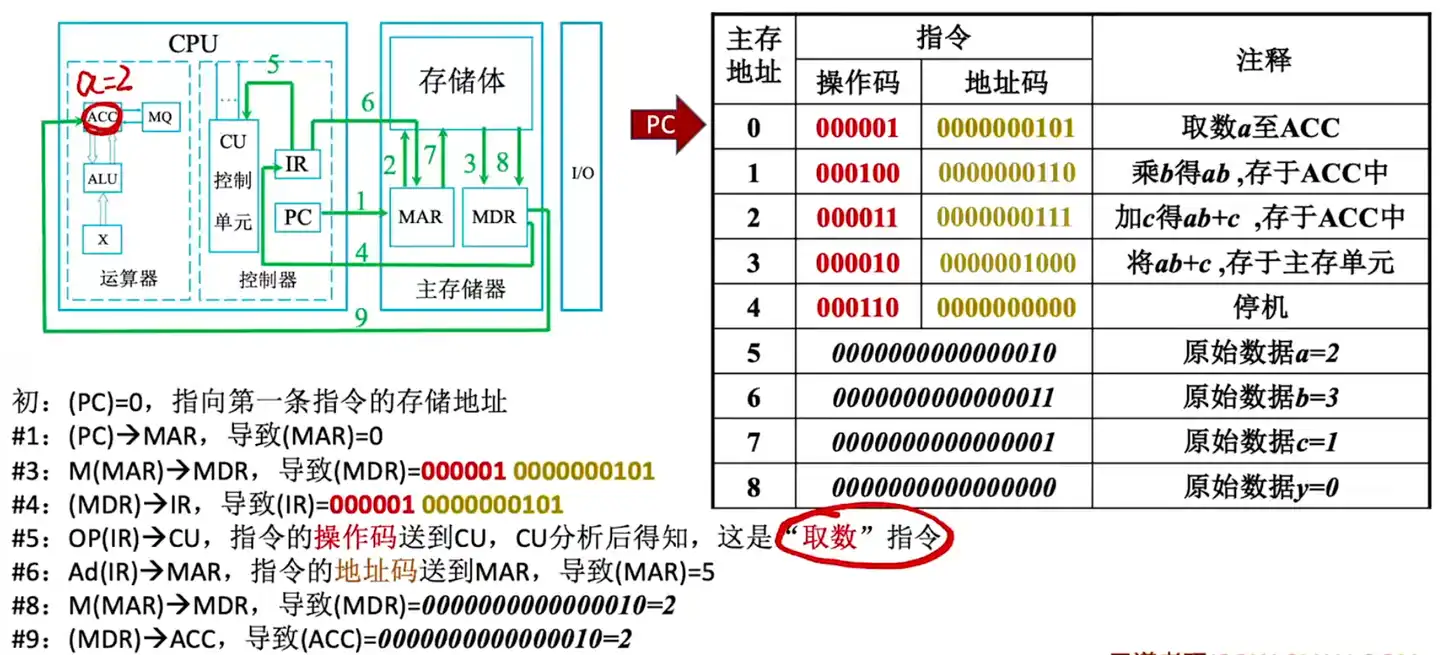 OP(IR)CU:会将 IR 的前 6 位送到 CU 中,CU 识别 6 位二进制为取数指令。