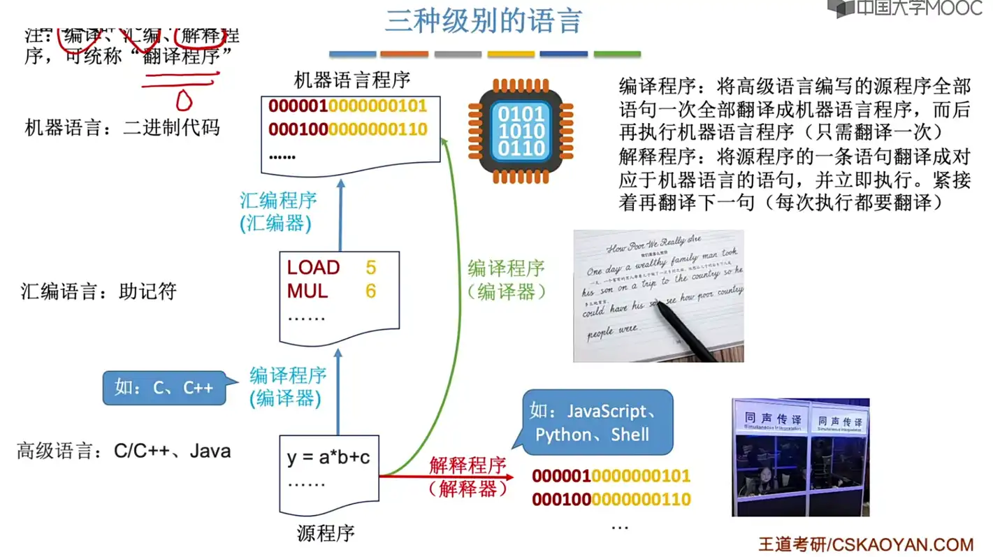 2.3.2、三种级别的语言(机器、汇编与高级语言,汇编、编译与解释程序)