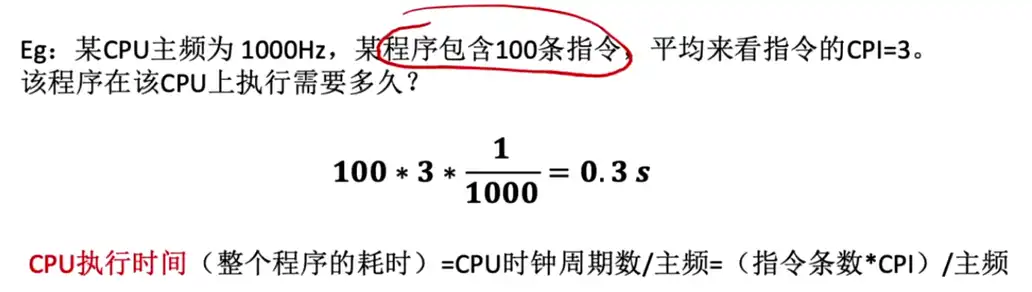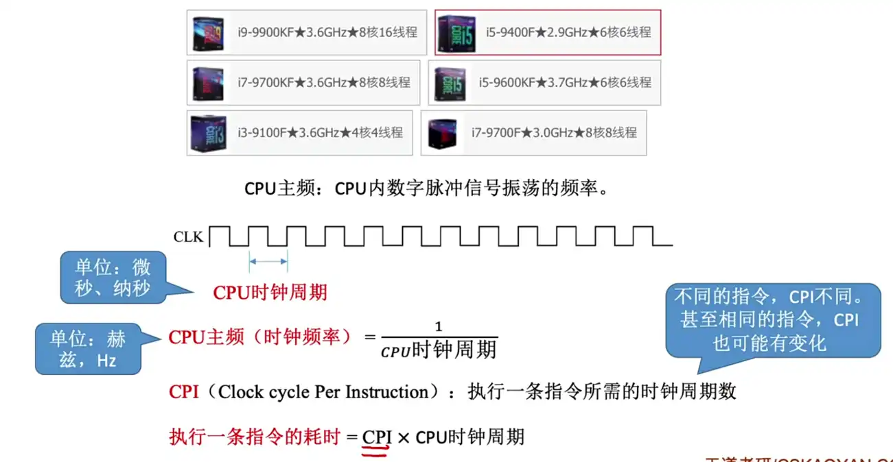 • 一般来说我们都是去计算的一条指令平均耗时:一条指令的耗时 = CPI x CPU的时钟周期