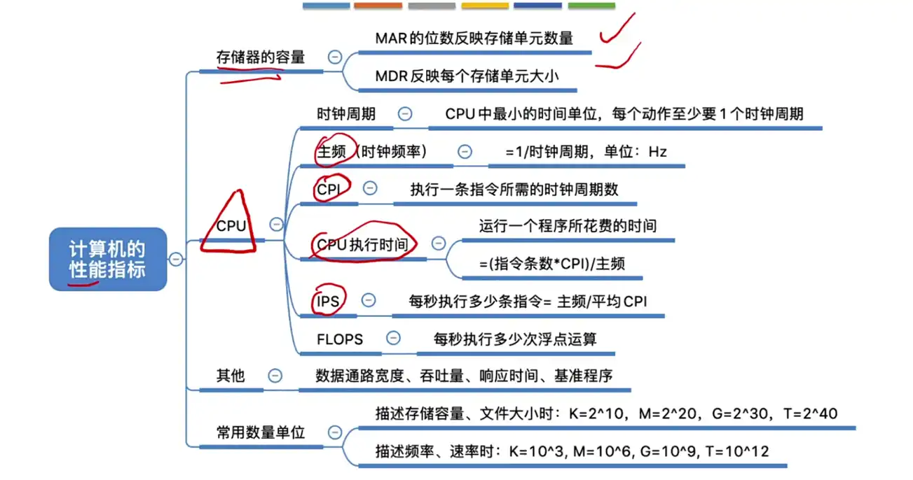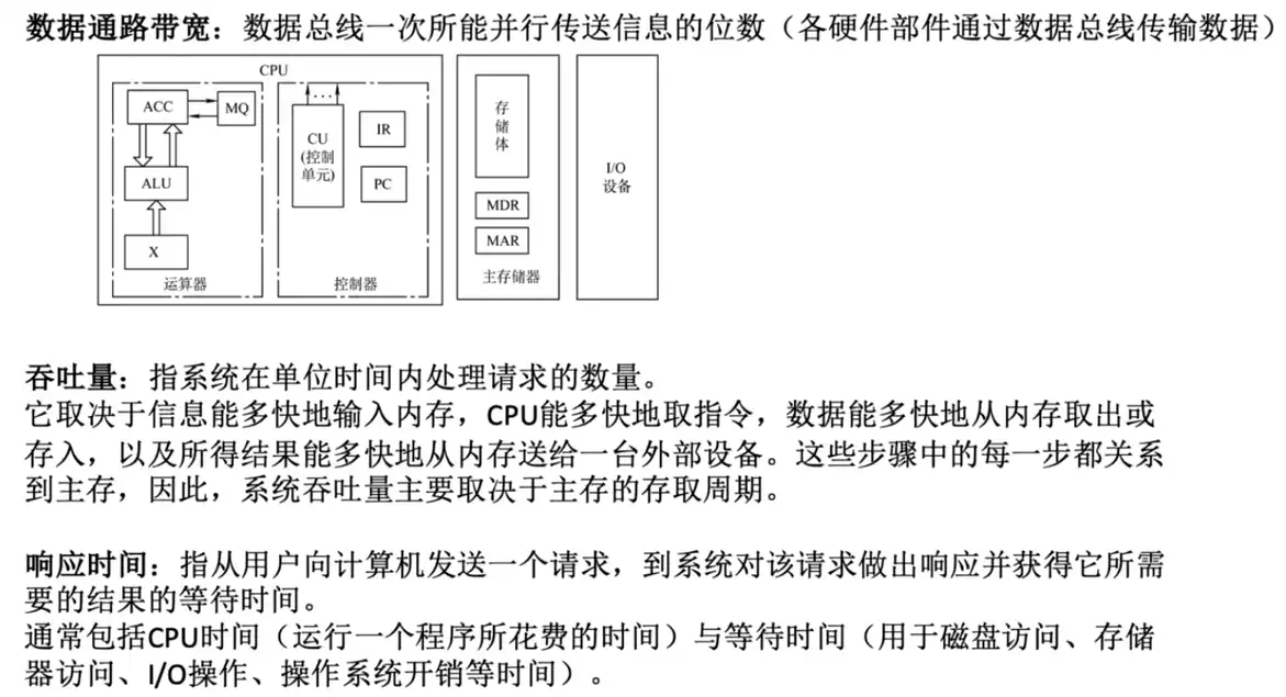 结论:决定执行指令速度的快慢与主频、CPI(一条指令执行的时间)、指令系统(不同的指令系统指令不一样都有,例如若是乘法指令没有就需要执行多条加法指令)有关