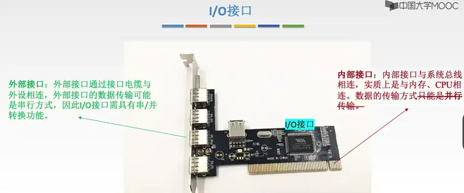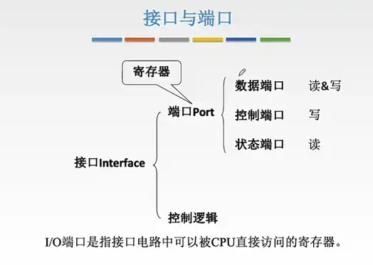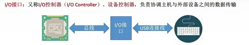I/O 接口(又称为 IO 控制器):主板上的一块芯片,主要是用于控制 I/O 接口。主要协调主机与外部设备之间传输数据,又称为设备控制器,I/O 设备连接上 IO 接口就可以与主机进行通信了。