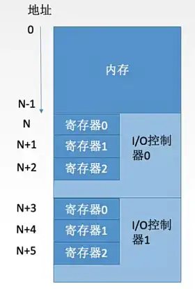 I/O 接口中包含三个寄存器:数据寄存器、控制寄存器、状态寄存器