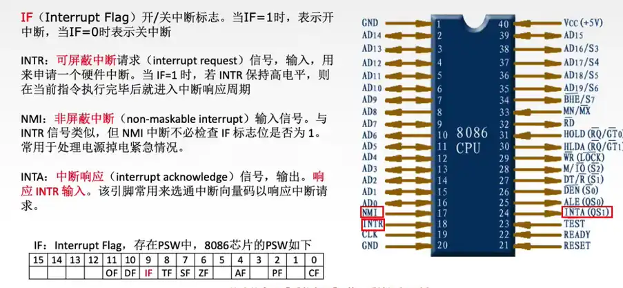 若是此时 CPU 没有关中断,此时会通过INTA这个引脚给中断控制器发回一个反馈信号