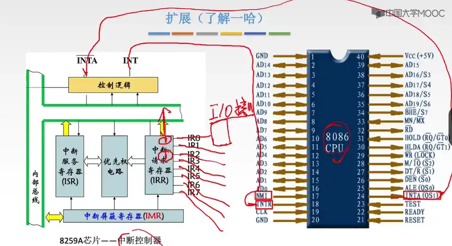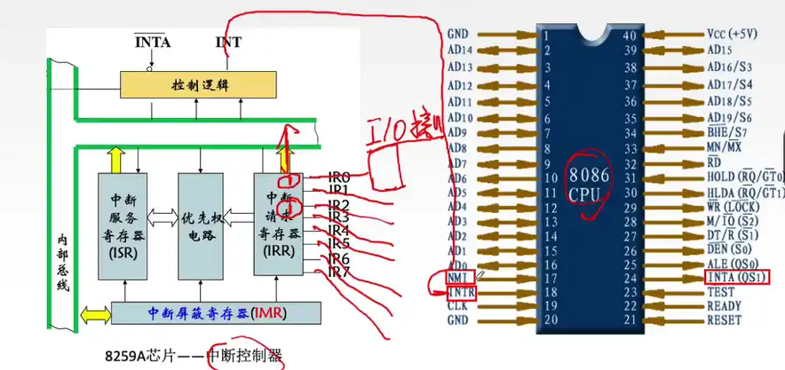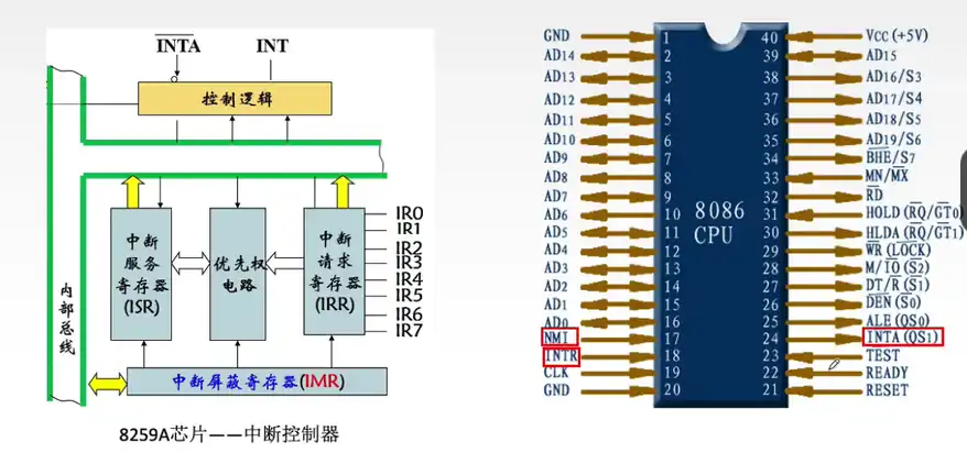与 8080 配套的中断控制器是 8259A 芯片,接下来就来详细剖析下面中断控制器如何与 8080CPU 搭配使用的