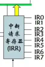 在 8259A 芯片中有一个中断请求标记寄存器如下,每一根都可以连上特定的 IO 端口,此时不同的 IO 接口则会通过这么一根线来发出中断信号。