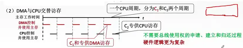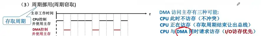 ②CPU 正在访存(需要等待 CPU 存取周期结束让出总线,此时 DMA 再访存)