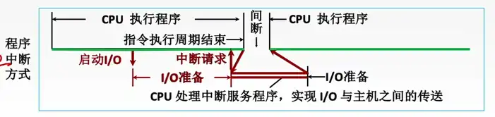 程序中断方式本质:IO 设备完成后会给 CPU 发出一个中断信号,CPU 与外设可以并行工作。
