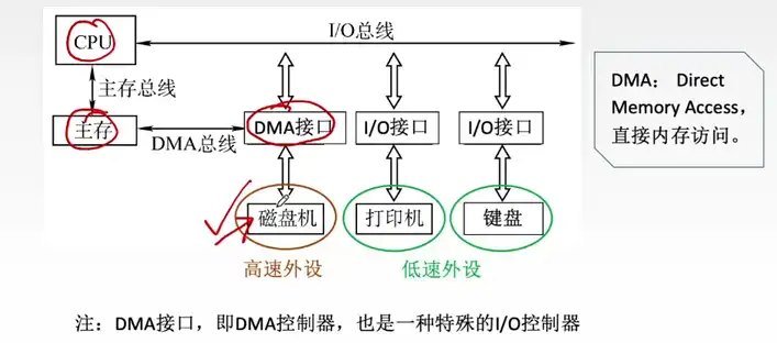 DMA 控制方式DMA(Direct Memory Access)接口也是一种 I/O 控制器:这种 I/O 接口称为 DMA 接口,直接内存访问。