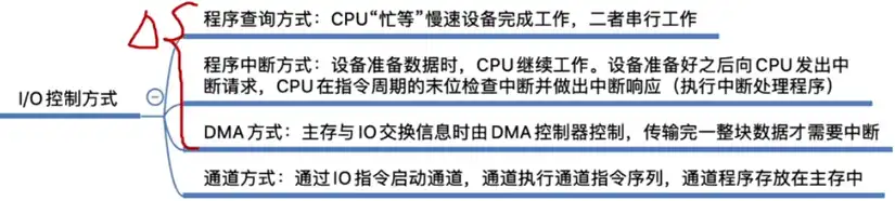 1.2.2、程序控制方式(程序查询、程序中断、通道)和硬件控制方式(DMA 方式)