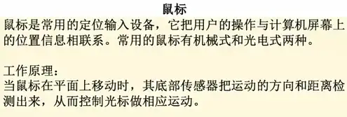 • 光电式鼠标:通过光传感器来检测鼠标移动的方向、距离、速度等。