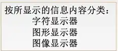 按显示信息内容不同分为:字符显示器、图形显示器、图像显示器