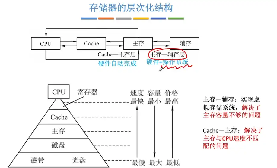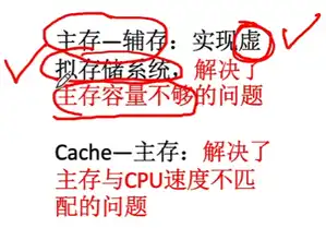 此时由于这种关系,应用程序员所看到的主存通常较大,下面是主存 - 辅存、Cache - 主存解决的问题