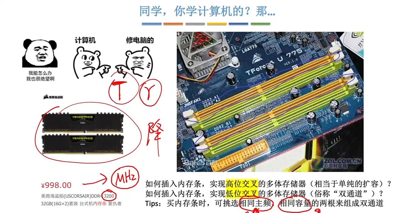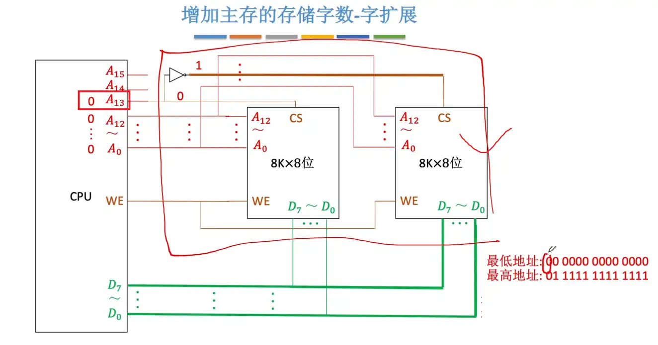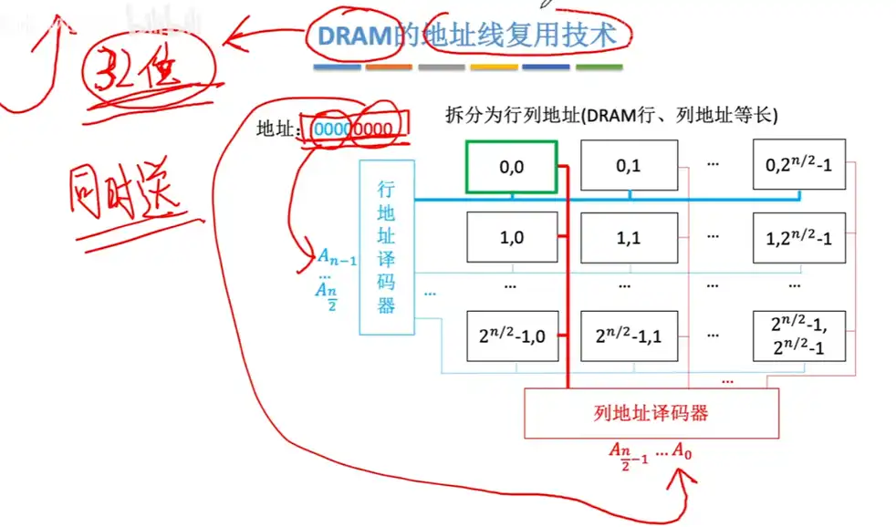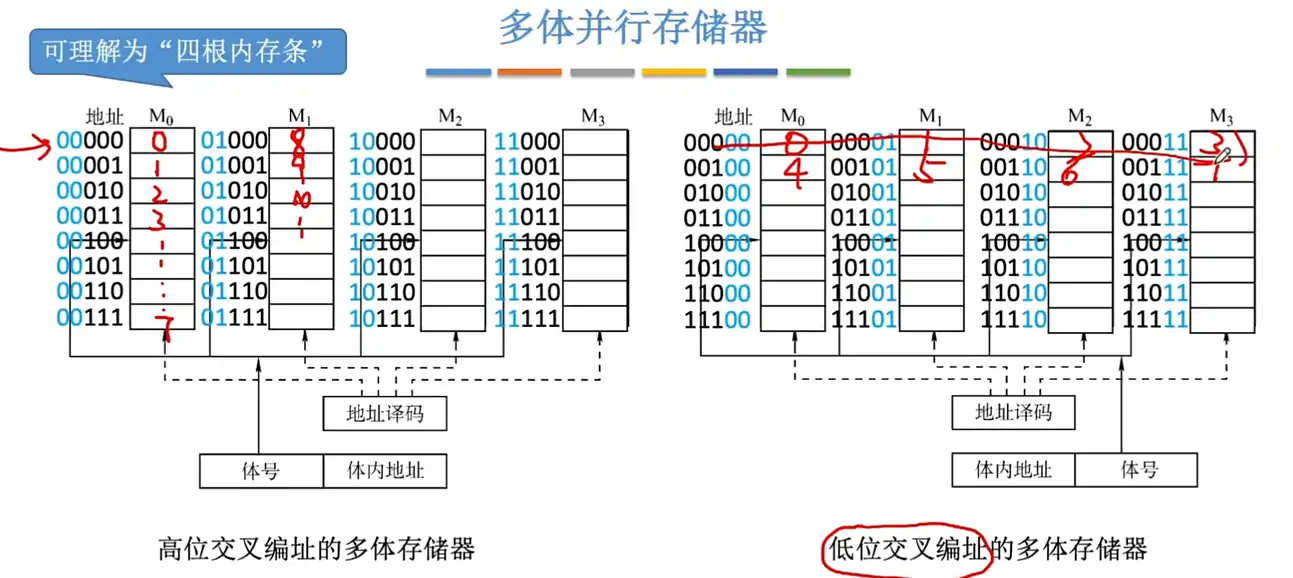 • 一个内存条可能包含多块存储芯片,而有时候我们若是指定要读取某块芯片数据,那么我们可以针对那一块芯片数据传输低电压,其他存储芯片传输高电压,此时就能够单独对指定的存储芯片进行读取了。