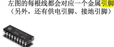 ** 对应每个存储芯片下都有如下图一样的金属引脚这是什么呢?** 这个是就是我们上图封装好之后对应的地址线、数据线、片选线以及读 / 写控制线相对应的引脚,用于其他模块来传入进来数据。