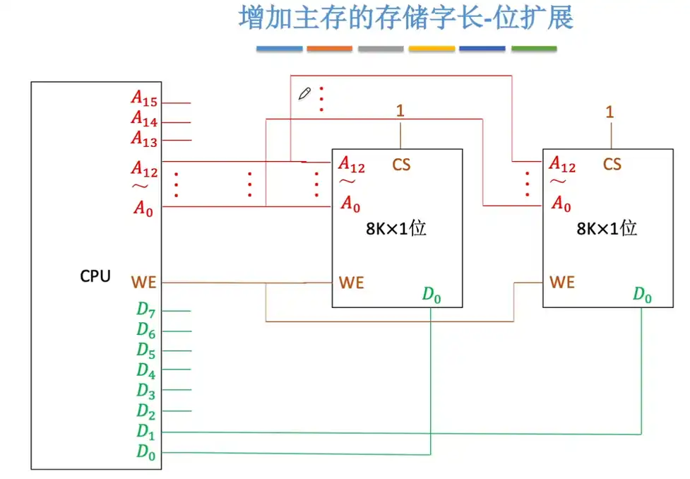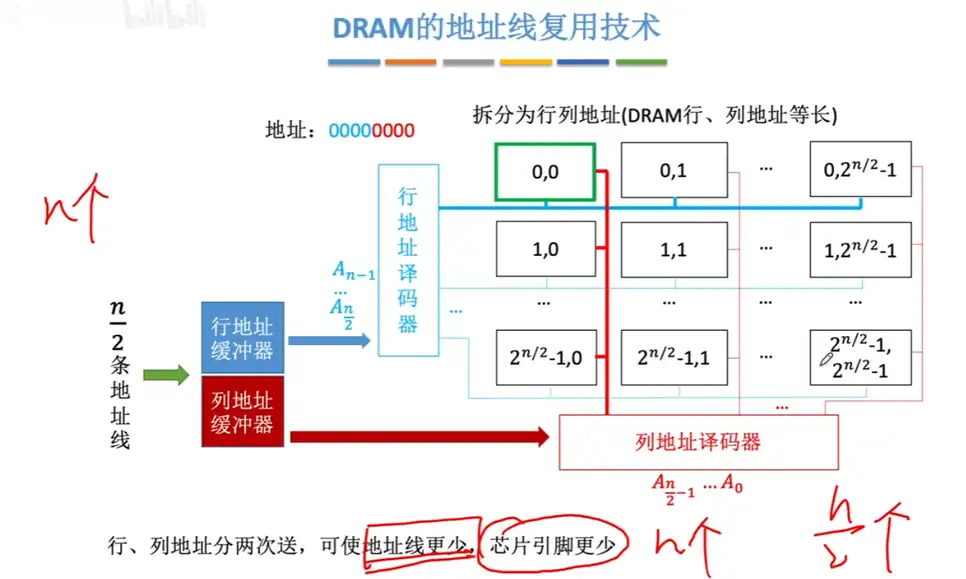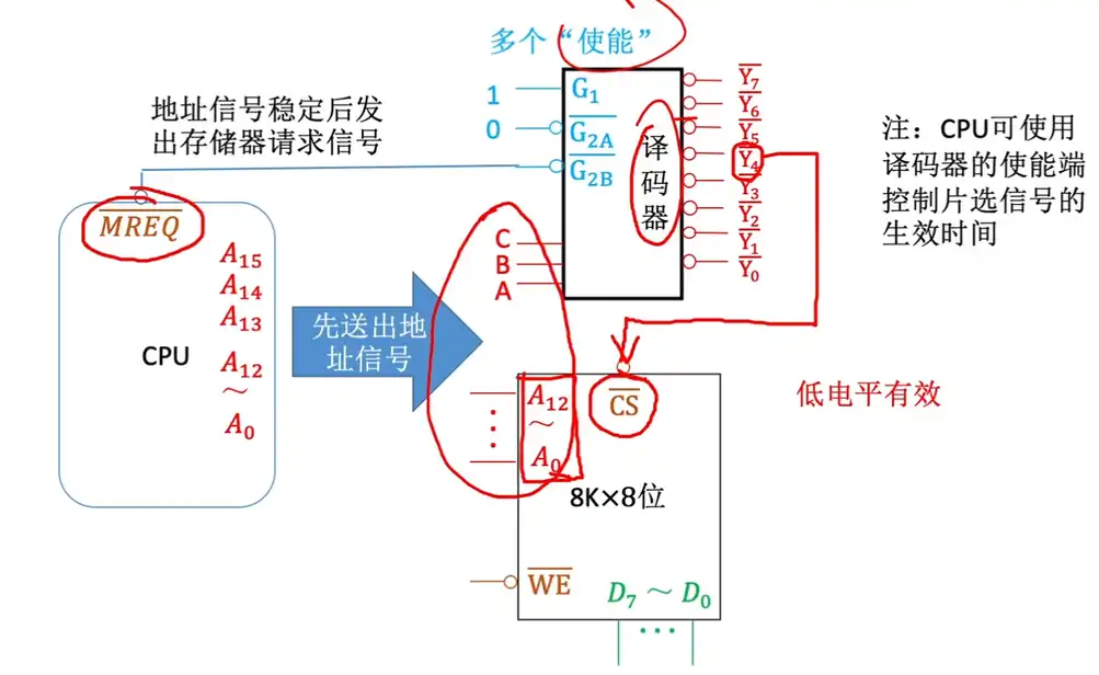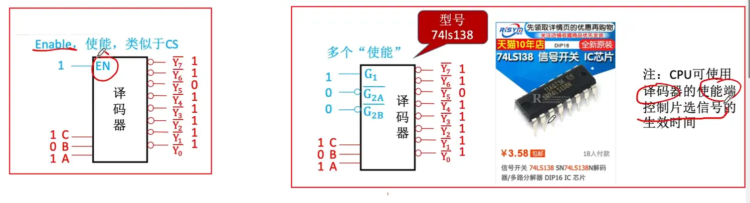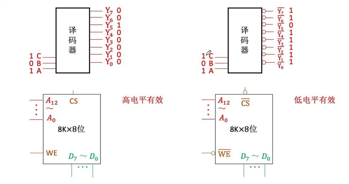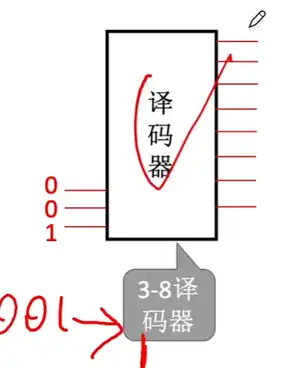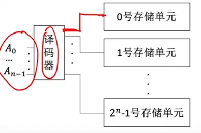 • 此时涉及到译码器的使用,译码器会根据 MAR 中给出的几个地址转变为指定某条线的高电平信号。