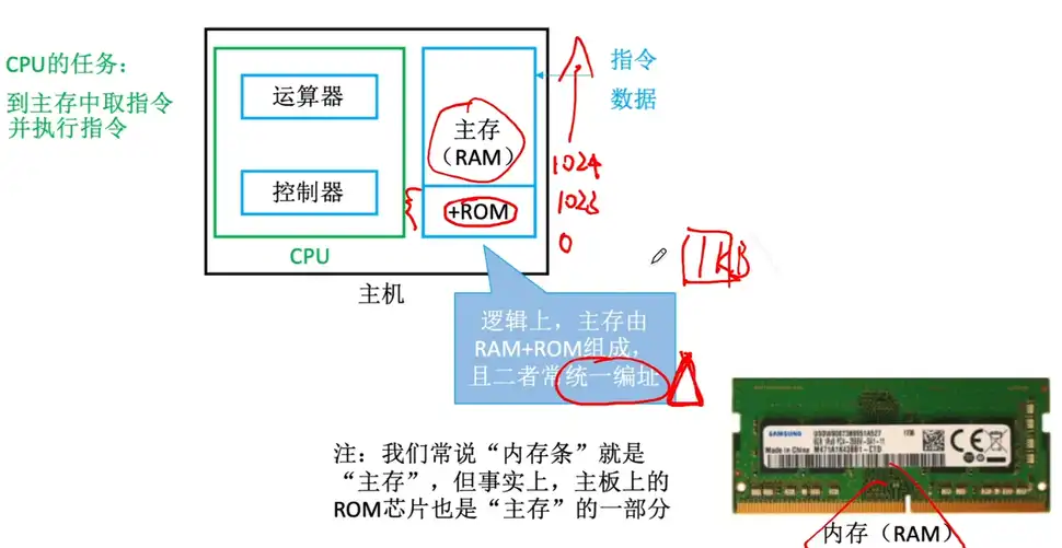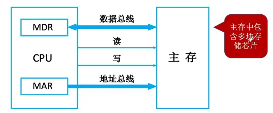 主存储器分为存储体、MAR(地址寄存器)、MDR(数据寄存器)三个部分: